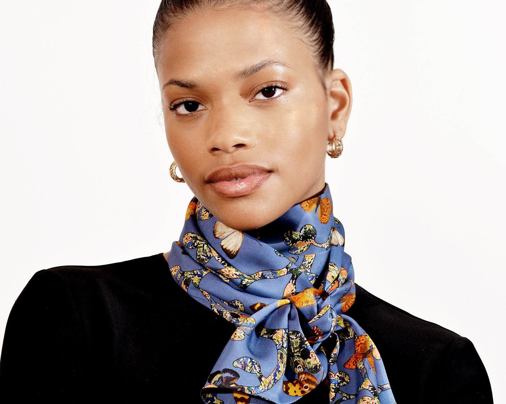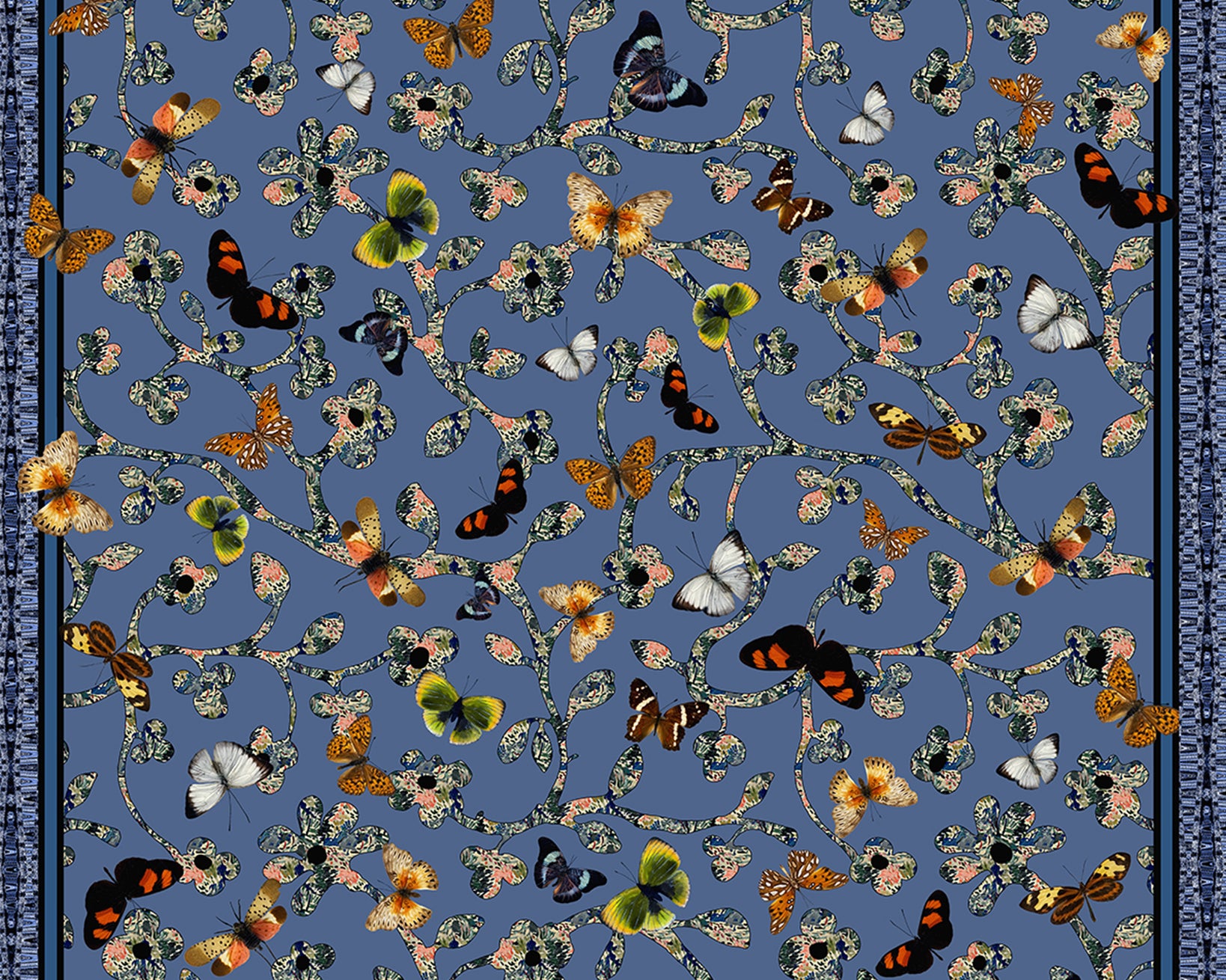 Butterflies, with their transformative journey from cocoon to flight, embody the spirit of travel and exploration. Our Blue Butterfly Scarf draws its inspiration from their intricate patterns, symbolizing transformation, freedom, and elegance. Made with luxurious 100% silk charmeuse, this lightweight scarf is a versatile accessory that adds a touch of natural grace to any outfit.